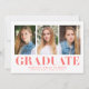 Celebrate your graduate’s milestone with these minimalist graduation announcements, featuring three of their favourite photos alongside bold coral "Graduate" lettering. This modern and sleek design can be fully personalized with the graduate's name, school name, and graduation year, making it the perfect way to share their achievement. Ideal for high school and college graduates alike, this stylish multi-photo announcement offers a contemporary and elegant way to announce their special day to friends and family.