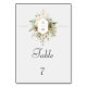 This lovely winter botanical table number card features bouquets of ivory roses and flowers, red holly berries, fir and golden snowflakes surrounding an elegant gold label for your monogram on a pale pearl grey background. Includes editable text fields.