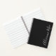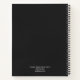 Personalized notebook in simple, but elegant font. Personalize with your name in front. On the back personalize your contact details, in case it's misplaced. Change notebook colour, by using the edit menu. You can also change the font style, size and/or colour through the edit menu.