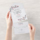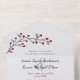 Simply elegant chic, lovely original art design of Red Winter Berries in a convenient all-in-one invitation! Fully customizable for your important information. Choose from Zazzle's beautiful quality paper options. Shown on smooth white hued with shimmer paper with high definition printing. A perfect hue of charcoal grey accents the back of the invitation. Matching items available in the Red Winter Berries collection.
