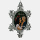 Personalized photo Christmas ornament keepsake for a newly engged or newlywed married couple with custom text for names and the year.