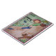 Illustration of a girl running with her dog, holding a basket in her hand.