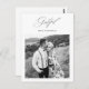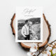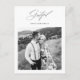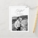 Modern minimalist black and white wedding one photo thank you postcard features elegant grateful calligraphy script and one photo with a custom personalized thank you message and return address on the back of the simple newlywed thank you card.