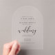 Beautiful in it's simplicity, the pieces in this wedding suite feature modern, hand-written script accents and a classic black and white colour palette that can easily be changed to suit your preferences. The bride and groom's initials and wedding date on the reverse of this arch-shaped acrylic invitation, and all the invitation wording can be customized using the provided template. Search ID523 to see all the pieces in this elegant set.