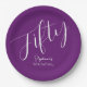 Simply Modern Script Autumn Purple 50th Birthday Paper Plate