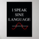 A fun text design with a little word play for math nerds.. this one reads 'I Speak Sine Language' above a red sine wave on simple graph lines.