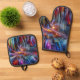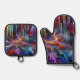 "Sinewaves Of Light" Colourful Modern Futuristic Oven Mitt & Pot Holder Set