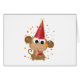 Mignonne singe de fête avec casquette festif, souffle et confetti