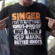 Funny Musician Sayings "Singer I Try To Make Things Idiot Proof But They Keep Making Better Idiots". Grab this Funny Singer design as a funny gifts for an awesome mom, dad or friend.