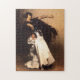 Singer Sargent Spanish Dancer puzzle. Oil painting on canvas from 1879-82. American painter John Singer Sargent travelled the world painting masterful portraits and landscapes. Spanish Dancer is one of his most visually dynamic paintings, depicting a young Spanish woman in a black blouse and white skirt dancing before an empty tan background. A beautiful gift for fans of John Singer Sargent, dance paintings, Spanish dancers, and American art.