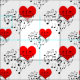 A seamless pattern of heart-shaped musical notes of black colour above the red heart against the white or light colour background. Love, music, romantic design "The Singing Heart" for anyone. You can change the colour of the background, the tiling pattern, size, and angle of rotation. Just be creative, use this beautiful fabric for any of your projects and be happy!