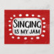 "Singing Is My Jam" is a fun text design with a white accent shape surrounded by white whimsical textured dots.