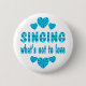 Share your love for singing with this shiny blue design with hearts and the words Singing what's not to love.