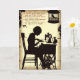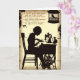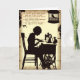 A lovely vintage silhouette of a lady at her sewing machine with a fairy and bird in a cage nearby, listening to the lady sing as she is sewing the days and nights away. A beautiful poem of singing a sewing really sets this vintage design apart.