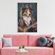 This whimsical wall art canvas features a shetland sheepdog dressed up in a tapestry hat and matching jacket playing the electric guitar. Perfect for the sheltie lover in your life.