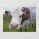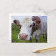Single cow peerring into camera postcard