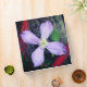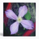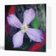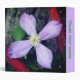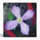 Pretty lavender clematis flower nestled in the spoke of an old wagon wheel. Flower photography by Susan.