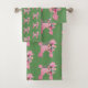 Single Pink French Poodle on Green Bath Towel Set