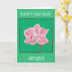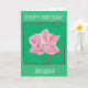 Say Happy Birthday with this pretty card featuring an original drawing of a single pink orchid flower on a green background. It's simple, modern and cute. You can personalise the greeting and name on the front and add your own words inside. The artwork is original, and only available from The Art of Being Beth.