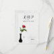 single red rose in black vase on soft grey textured background for wedding RSVP