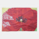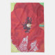 Single Stem Poppy On Red Green And Orange Backgrou Kitchen Towel