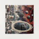A small, innocent teddy bear stands in front of an ornate mirror. In the reflection, a sinister, scary version of the teddy bear stares back with dark, eerie eyes. The scene takes up only a portion of the image, while the rest of the space is filled with a surreal array of random objects floating in the air—detailed books, clocks, teacups, and abstract shapes, all defying gravity. The ground features a black and white chequerboard pattern, while the sky above is a deep, vibrant red with swirling, chaotic patterns, creating a bizarre and unsettling atmosphere.