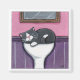 Whimsical cat art fridge magnets make great gifts for cat enthusiasts. Grey cat fast asleep in the bathroom sink. Created from an original painting � 2008 Lisa Marie Robinson