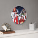 Festive Sinterklaas wall clock featuring Saint Nicholas on horseback and a traditional Dutch rooftop scene with a drummer Piet under a snowy night sky. Perfect for celebrating December 5th, Dutch holiday décor, children's rooms, or cozy winter interiors. A charming nostalgic illustration ideal for Sinterklaas lovers and seasonal home decoration. Original artwork by Caroline Bonne Müller