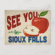 A charming Sioux Falls South Dakota vintage travel postcard featuring a lovely red apple, along with fun retro style text that says, "See you in Sioux Falls"