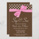 Sip and See Pink Brown Polka Dot Bow Invitation