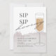 This chic and modern "sip sip hooray" adult birthday invitation features a glass of faux gold champagne on a white background with brush strokes in light grey beige watercolor. The reverse side features a dark grey background with faux gold splatters. Change the background colour and personalize for your needs. You can find more matching products at my store.