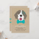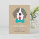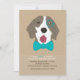 A handsome pup, wearing a monocle and bow tie, is featured against a tan damask background in this fun invitation. Well-suited for any dog-lover's birthday celebration. (FP)