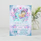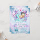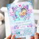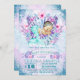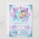 Des invitations à la douche pour bébé Sirène avec adorable petite sirène drapée en perles sur un beau bleu violet et turquoise sous l'arrière - plan de mer avec des chevaux de mer et des coquillages. Ces invitations pour les douches pour bébés sirènes sont facilement customisées pour votre événement en ajoutant simplement vos détails. Il s'agit d'un dessin imprimé sans véritable parties scintillant.