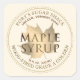 Feuille d'érable or sur étiquette d'ivoire. Les mots "MAPLE SYRUP" sont écrits dans une police en or foncé ciselé.