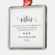 I was impressed by the quality and size of the ornament. Metal framing and design were perfect. Definitely recommend any of the metal framed ornaments. I ordered different ones all of the same quality and personalized professionally. Perfect No pictures as they were all gifts
