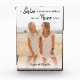 This Elegant Photo block will make a wonderful present for any sister or sisters this christmas, birthday or other special occassion. The modern way to display your most precious photographs this one features, a photo with a quote that reads 'A sister is a little bit of childhood that can never be lost.' personalized with their names at the bottom over a white faded overlay.