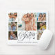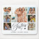 Modern photo collage typography mouse pad features 7 photos and elegant script ''sisters'' and names. Perfect gift for sisters.