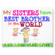 "My SISTERS have BEST BROTHER in the world", a customizable product. This design is also available in several other products. Also check out vice versa.