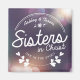 Bold and elegant Christian emblem design with words, "Sisters in Christ" in script with banner design elements. Top centre of emblem has area for your custom names (friends names) in white semi-circle. Bottom semi-circle (centred below Sisters in Christ typography) has words, "ONE IN THE SPIRIT" but can be customized to fit your needs. Great gift for any Christian sister. Background is dramatic Bokeh with light effects.