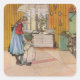 Sisters in the kitchen. The youngest is wearing an old fashioned bonnet. Original title "Koket av Carl Larsson Sisters 1898. Vintage fine art by the Swedish artist Carl Larsson.