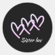 Sisters Love Heart Black Classic Round Sticker
