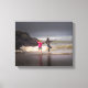 Sisters on a Foggy Morning at the Beach Canvas Print