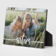 Modern photo plaque featuring single photo inside white frame and typography script ''sisters'' in trendy handwritten lettering. Personalize further with names.