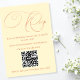 Cette carte RSVP contemporaine est le compagnon parfait de votre suite Verona Sunset mariage. Doté d'un arrière - plan en chiffon citron et d'un texte orange chaleureux, cette carte dirige les invités vers votre site mariage, où ils peuvent facilement trouver tous les détails de l'événement et soumettre leur RSVP en ligne. Il s’agit d’une solution élégante et efficace qui assure la cohésion de votre gamme de papeterie et la continuité de la planification de votre mariage.