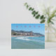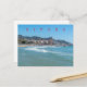 A beautiful view of the sea off the town of Sitges in Spain with the Church of Sant Bartomeu and Santa Tecla in the background printed on postcard.