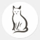 Sitting Cat – Minimalist Ink Silhouette on Classic Round Sticker