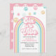 Six est une invitation d'anniversaire 6 ans de style rétro arc-en-ciel inspirée de Vibe avec des polices et des couleurs des années 70.