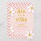 Six is a Vibe Retro Check Pink Daisy Invitation