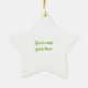 The ornaments came really fast, which was good. They are a good size and the ceramic is nice but the resolution and colouring are bad, I ordered five of the same and some came out different from the others. I arranged the lettering carefully on the preview, and on the 5 ornaments I ordered, only two had the writing where it wasn't cut off. Attached is a screenshot of what I ordered vs what I got. The picture quality isn't good and the colouring varies on each one.