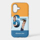 Join in the fun with this 67 custom photo phone case! This modern and eye-catching case features two of your own photos, displayed within the numbers 6 and 7. The bold orange and blue color block background provides a modern aesthetic for your personalized pictures. Simply click 'Personalize' to upload your images into the number templates, and customize the name at the bottom to create a unique phone accessory.